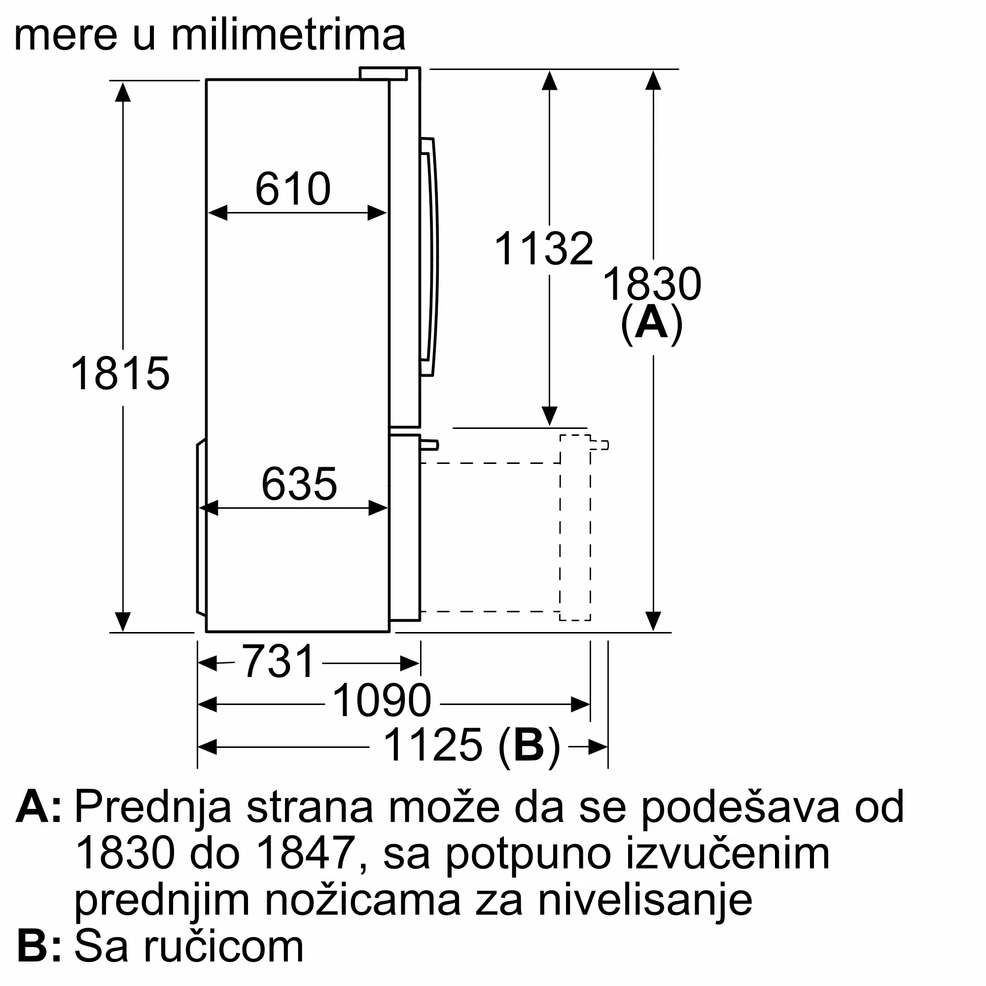 Serija 8 Donji zamrzivač sa francuskim vratima, troje vrata 183 x 90.5 cm Čelična mat obrada protiv otisaka prstiju, Total No FrostKFF96PIEP