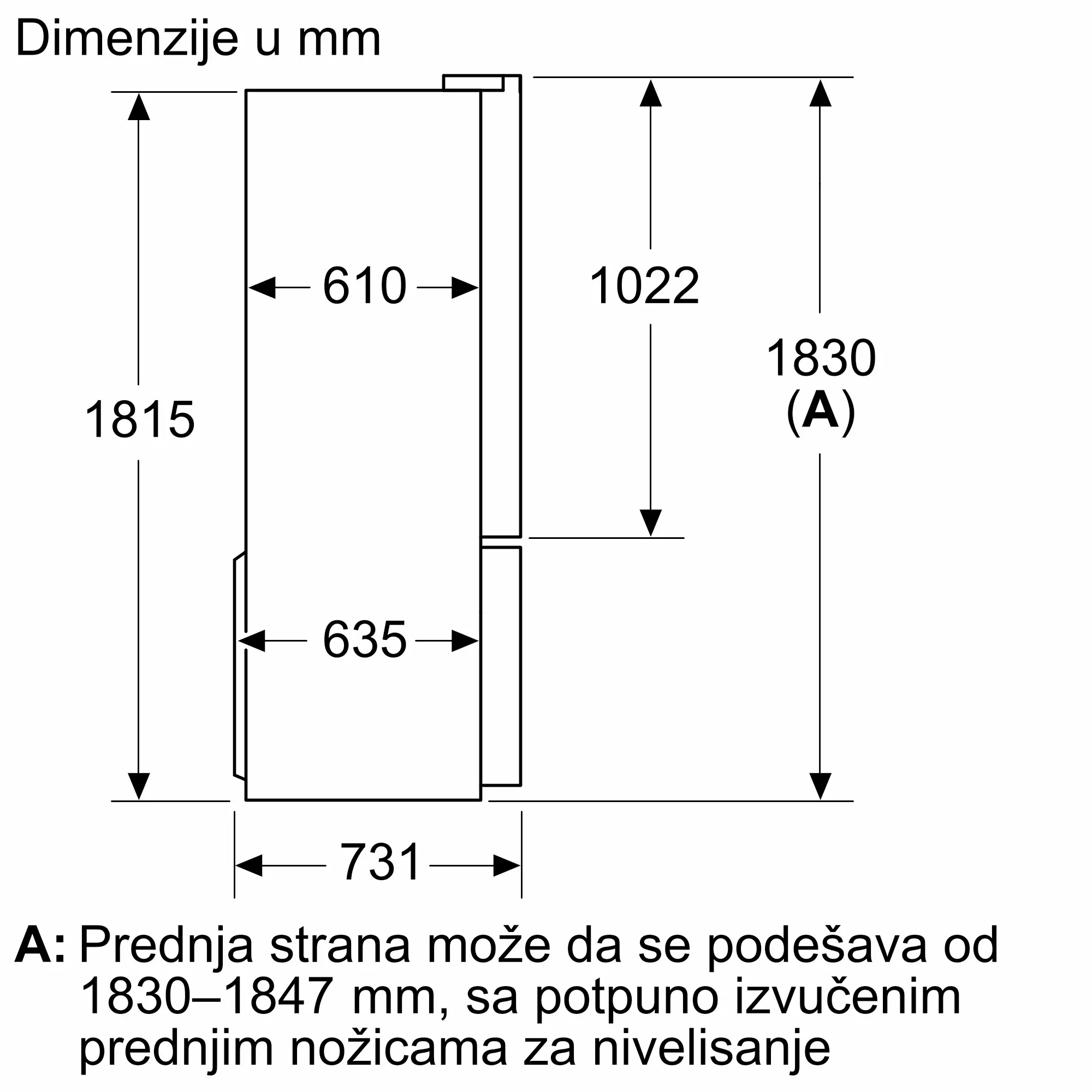 Serija 4 Donji zamrzivač sa francuskim vratima, troje vrata 183 x 90.5 cm Crna čelična mat obrada protiv otisaka prstiju, Total No FrostKFN96AXEA