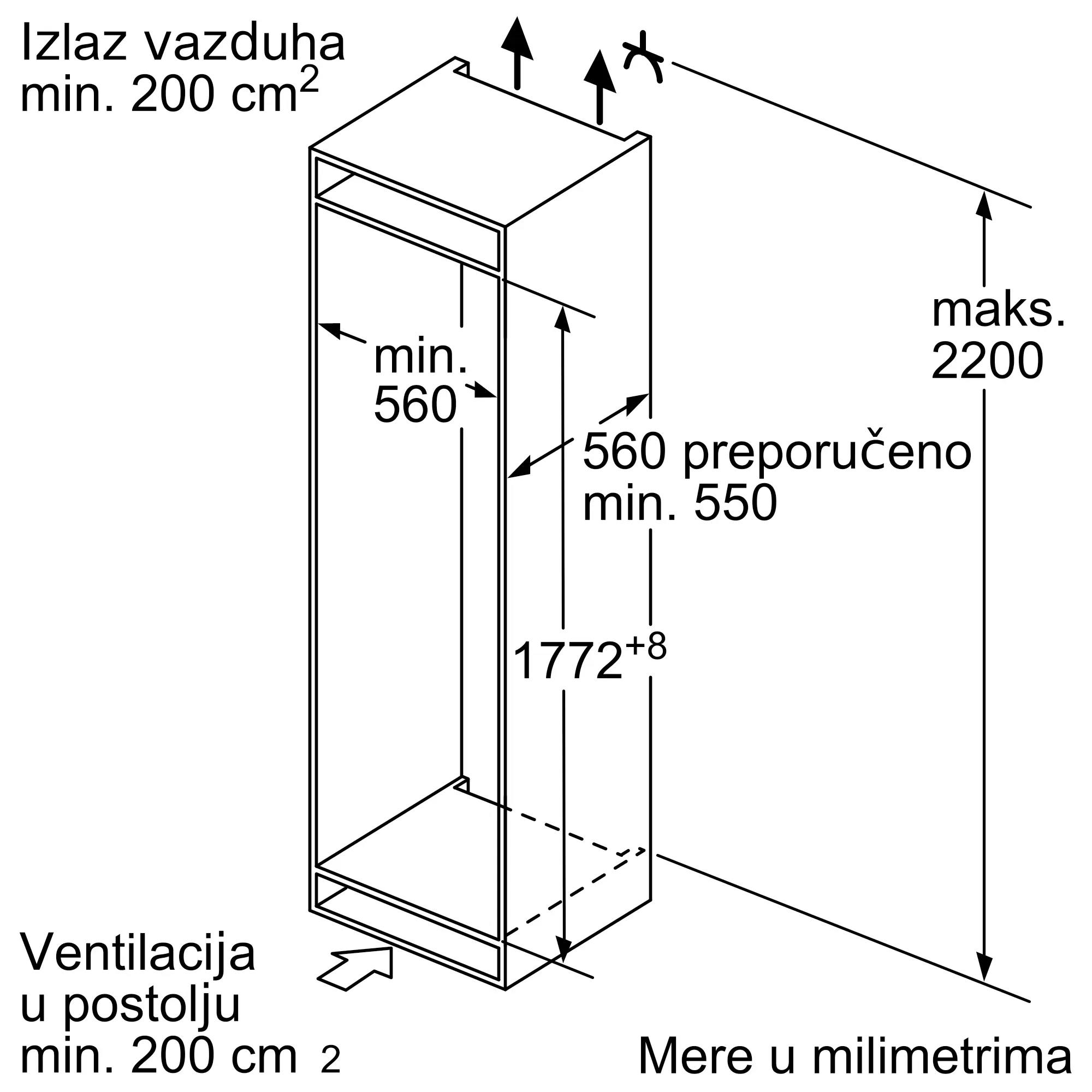 Zbir zapremina odeljaka za hlađenje