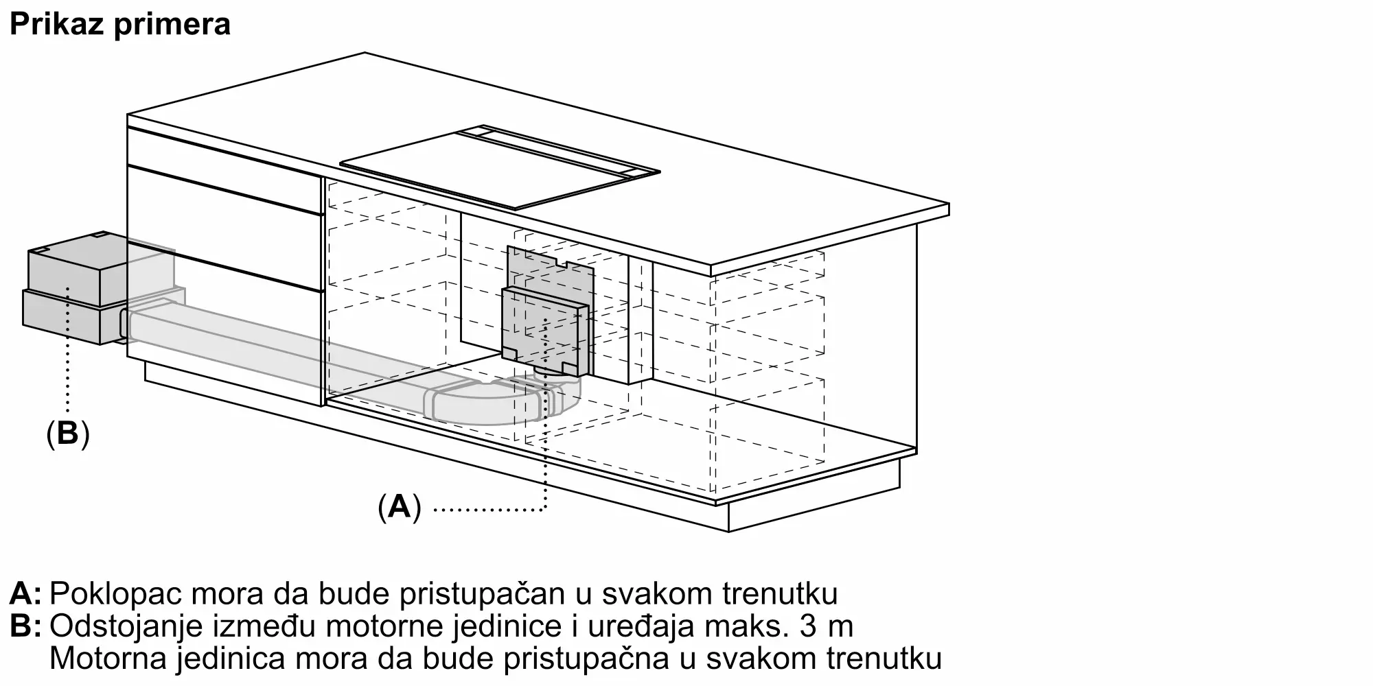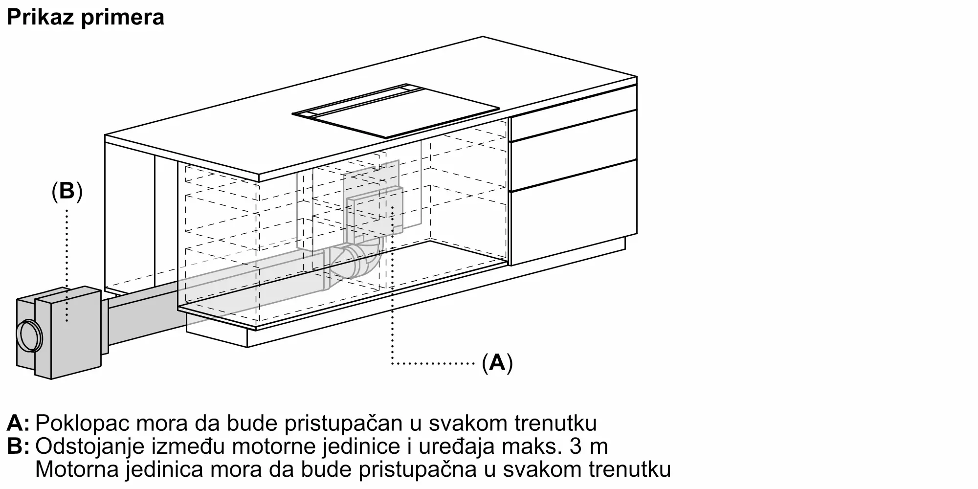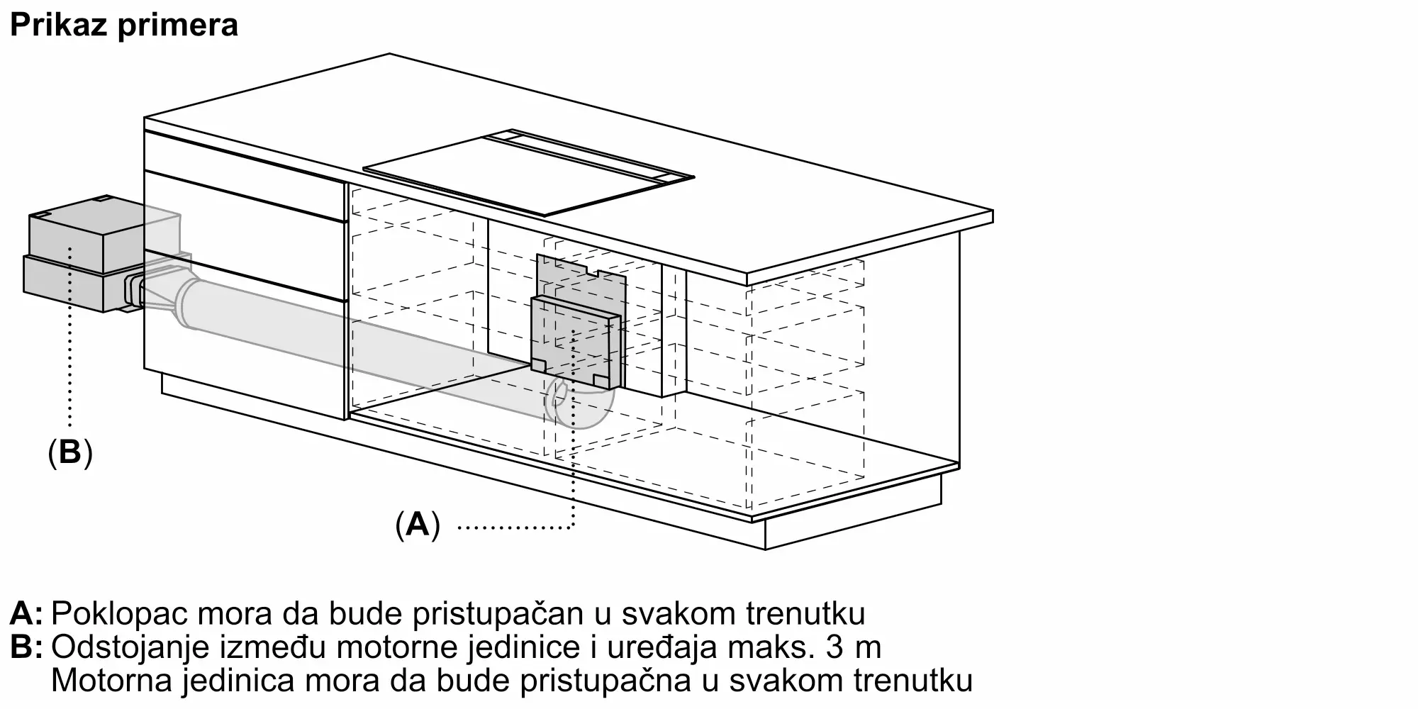Poseduje neophodne delove za montažu motora na udaljenosti do 3 m od jedinice za ventilaciju