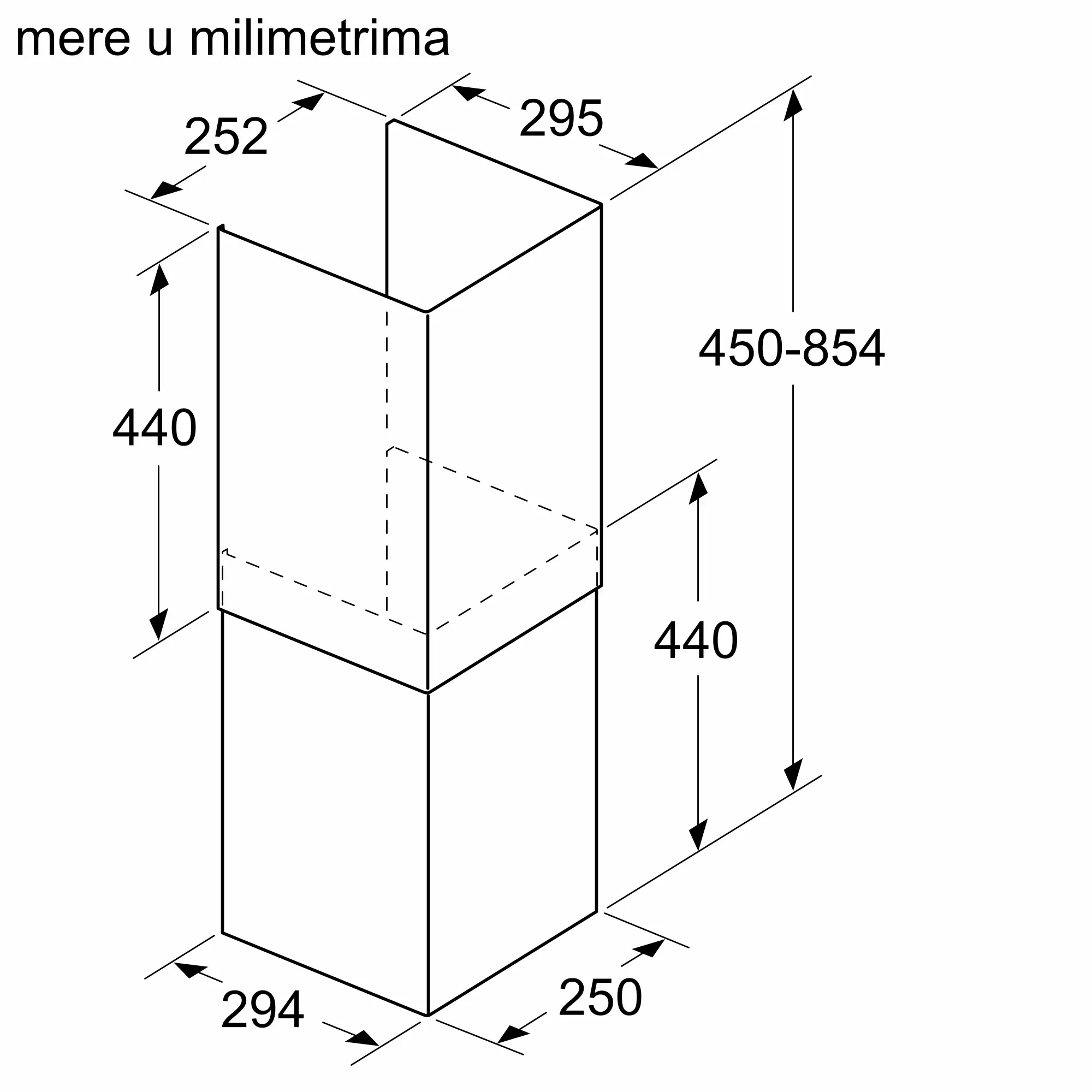 Produžetak dimnjaka 450-854 mm za ugradne aspiratore