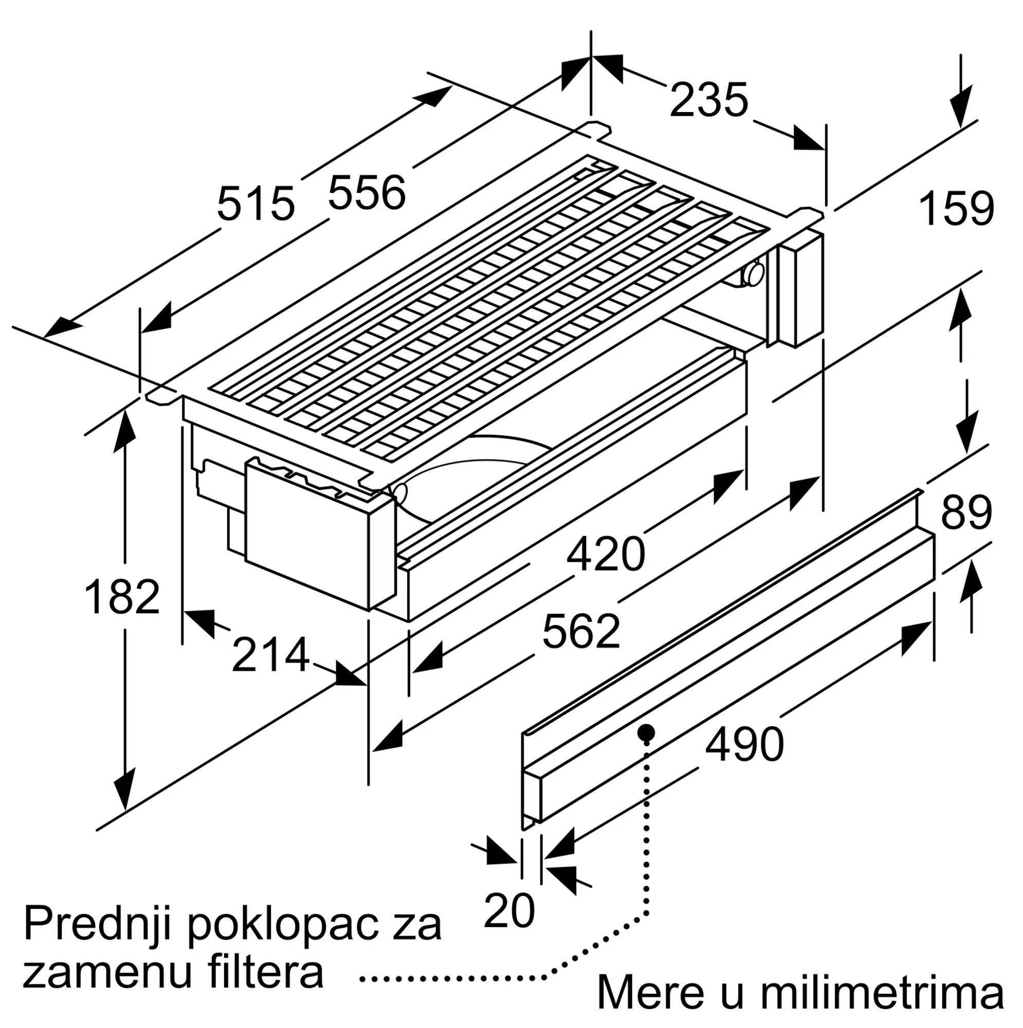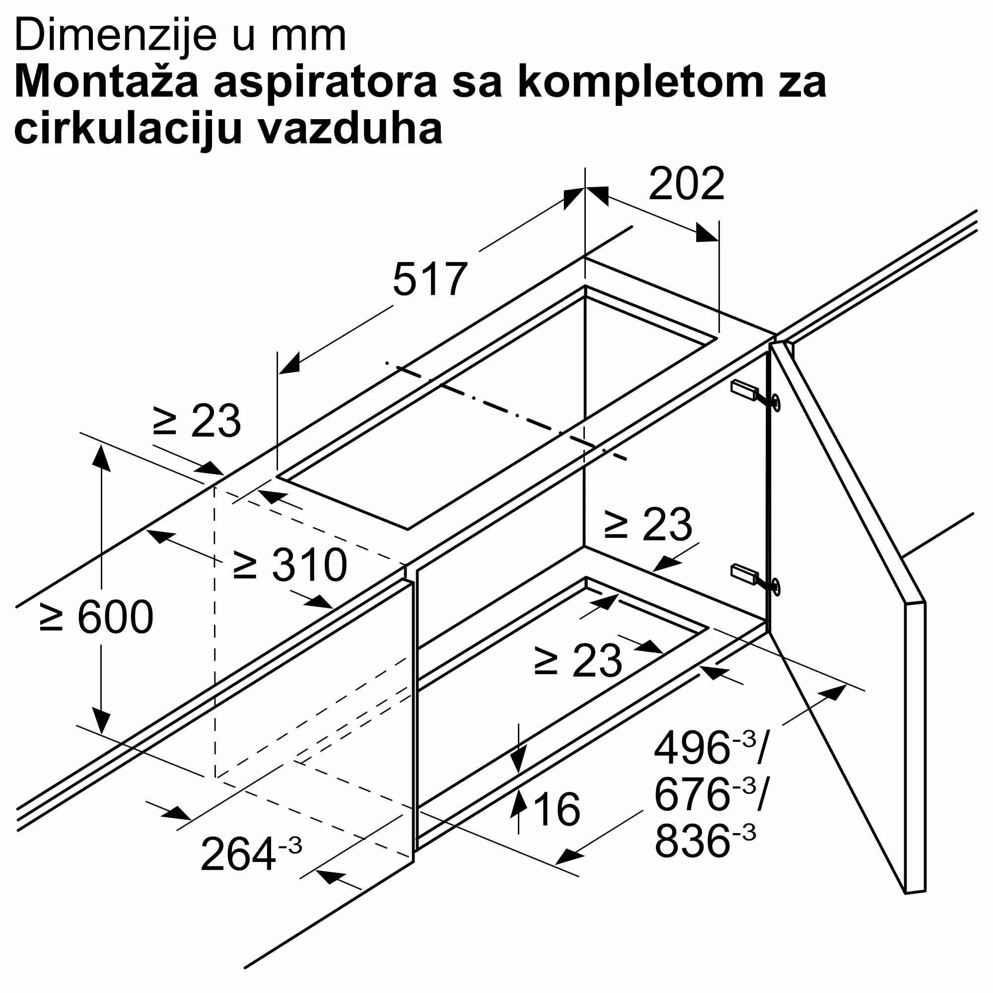 Za ugradnju u viseći ormarić
